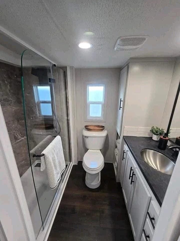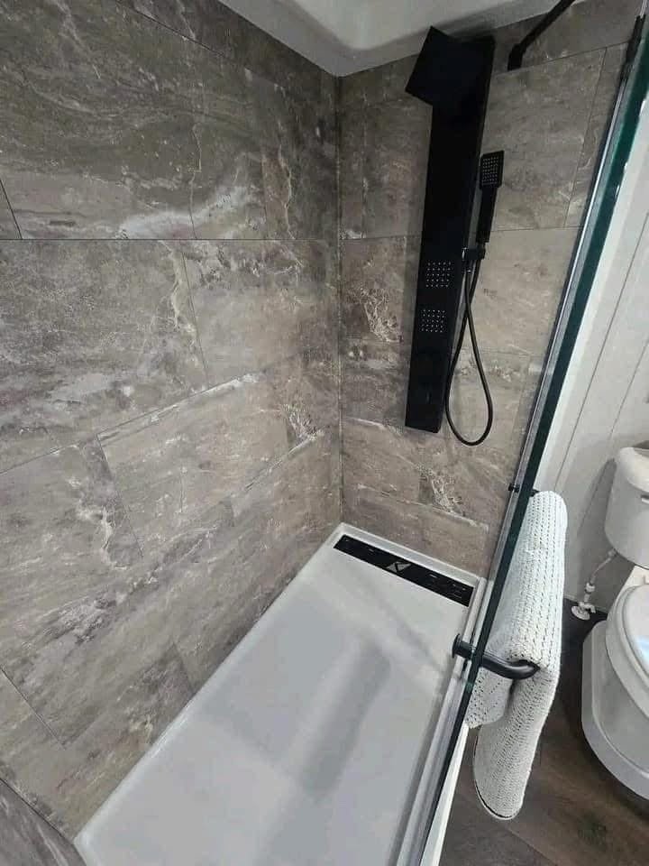 Walk in shower an composite toilet