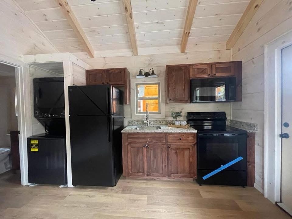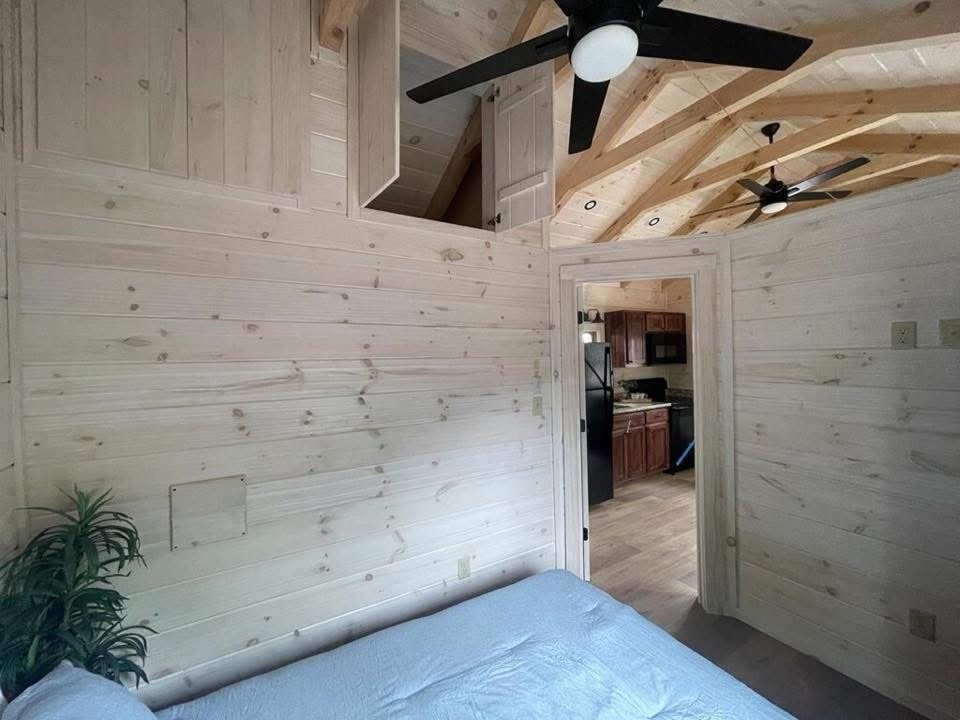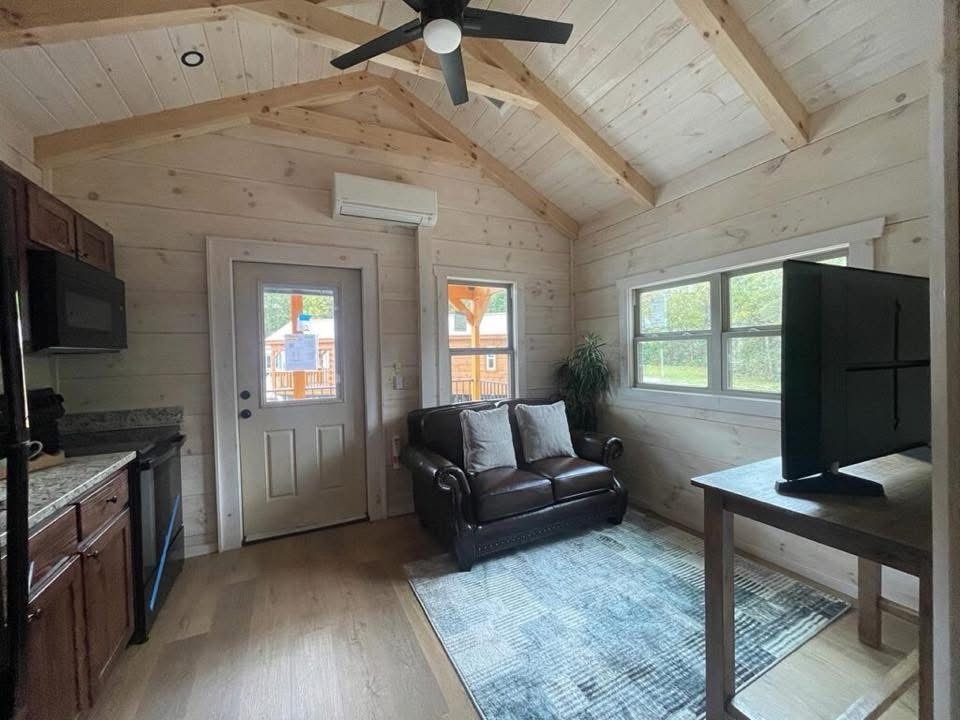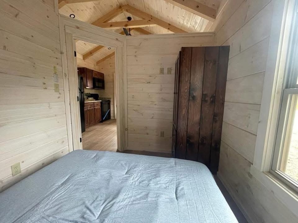 This Nook I model tiny home is a 276 square feet, 12′ x 28′, 1 bedroom, 1 bath RV park model that comfortably sleeps 4 people.