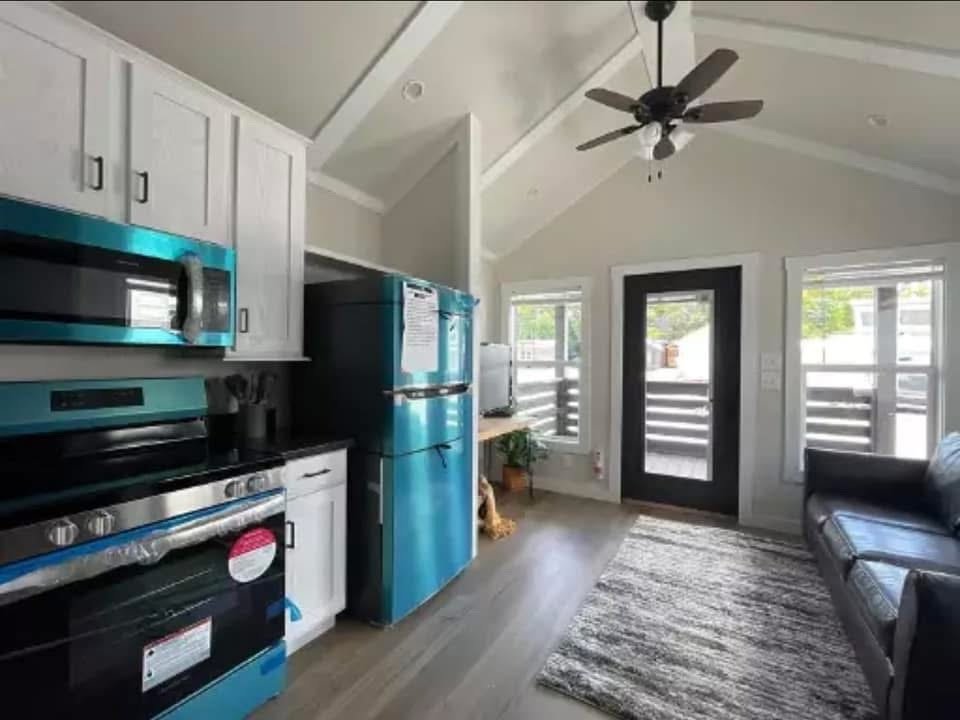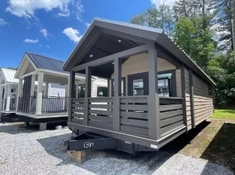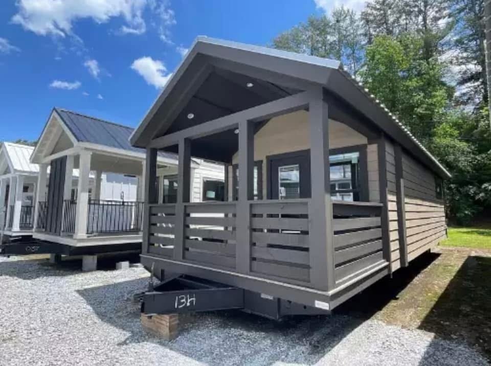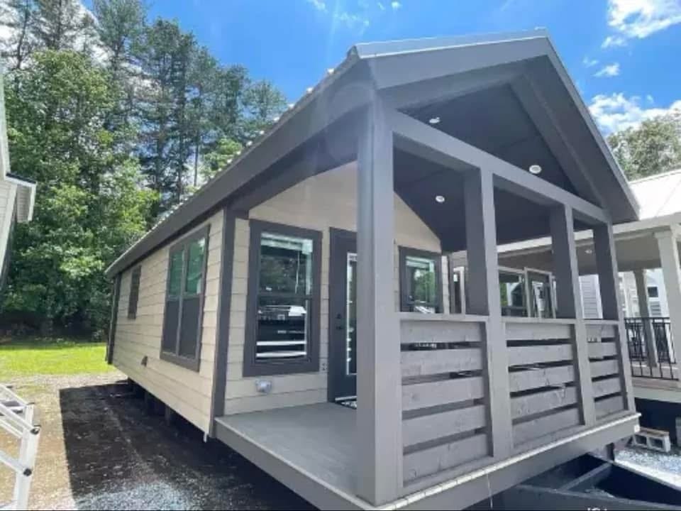 This Refuge model tiny home is a 395 square feet, 14′ x 38′, 1 bedroom, 1 bath RV park model that comfortably sleeps 4 people.