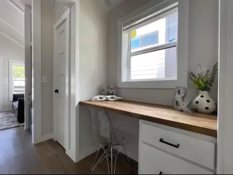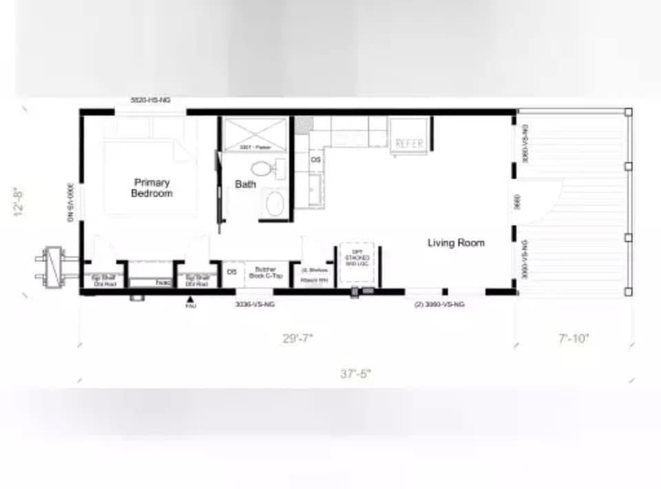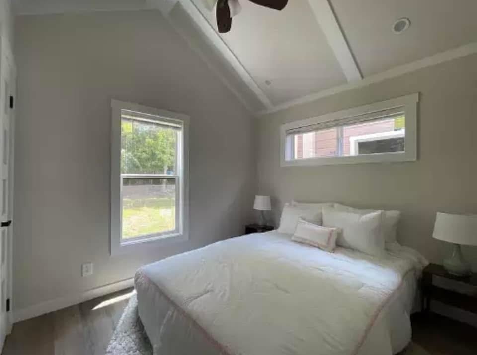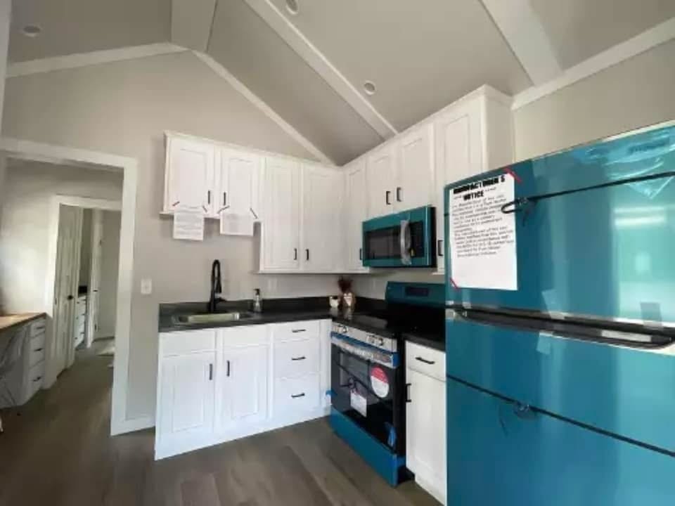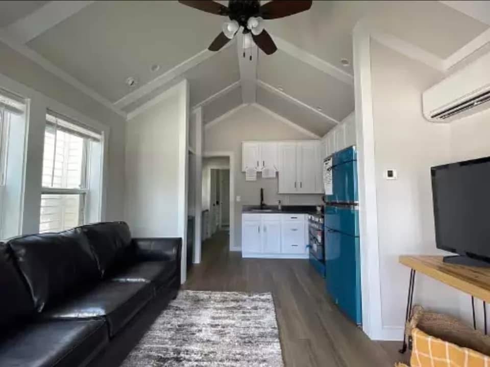 This Refuge model tiny home is a 395 square feet, 14′ x 38′, 1 bedroom, 1 bath RV park model that comfortably sleeps 4 people.