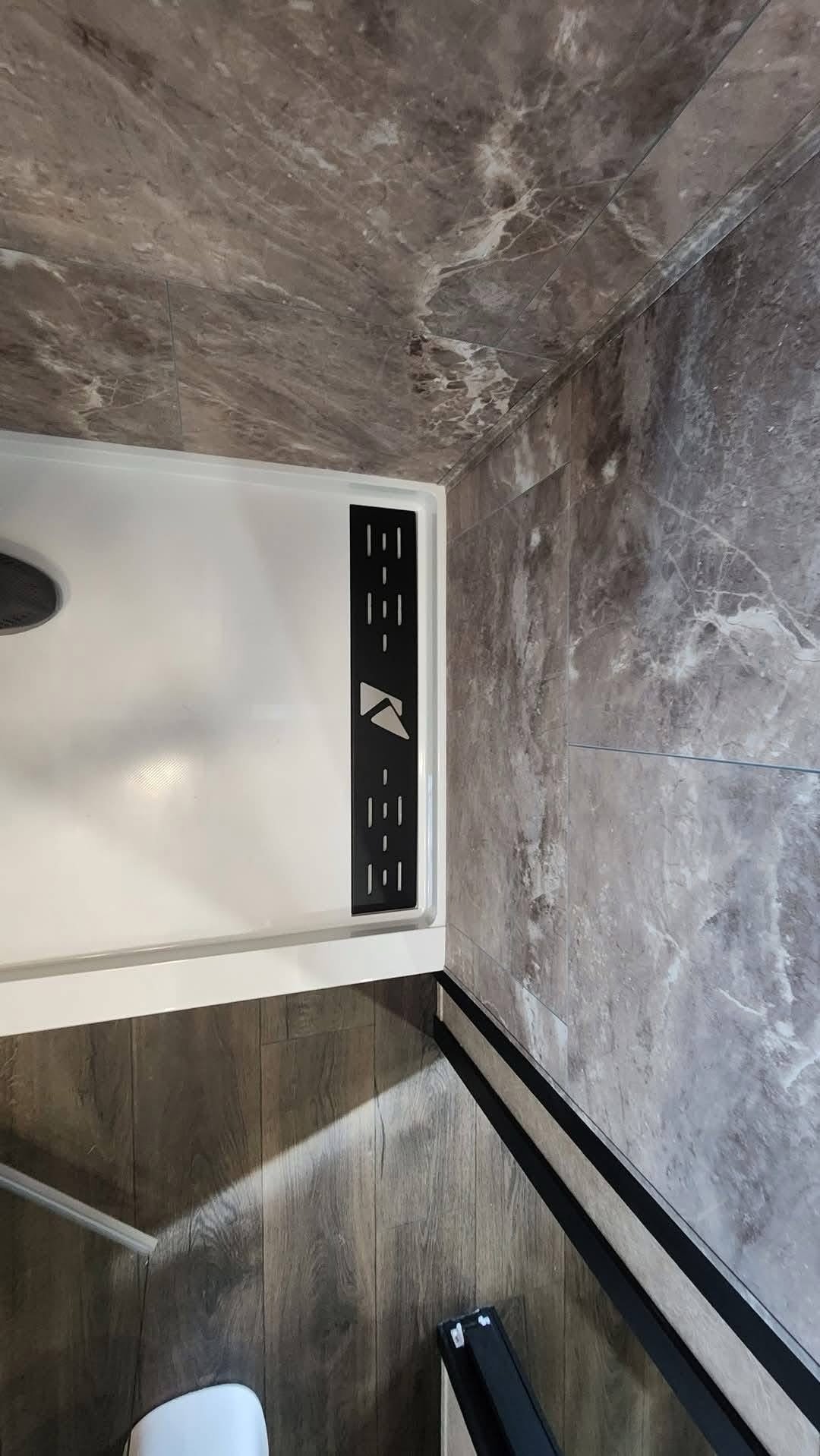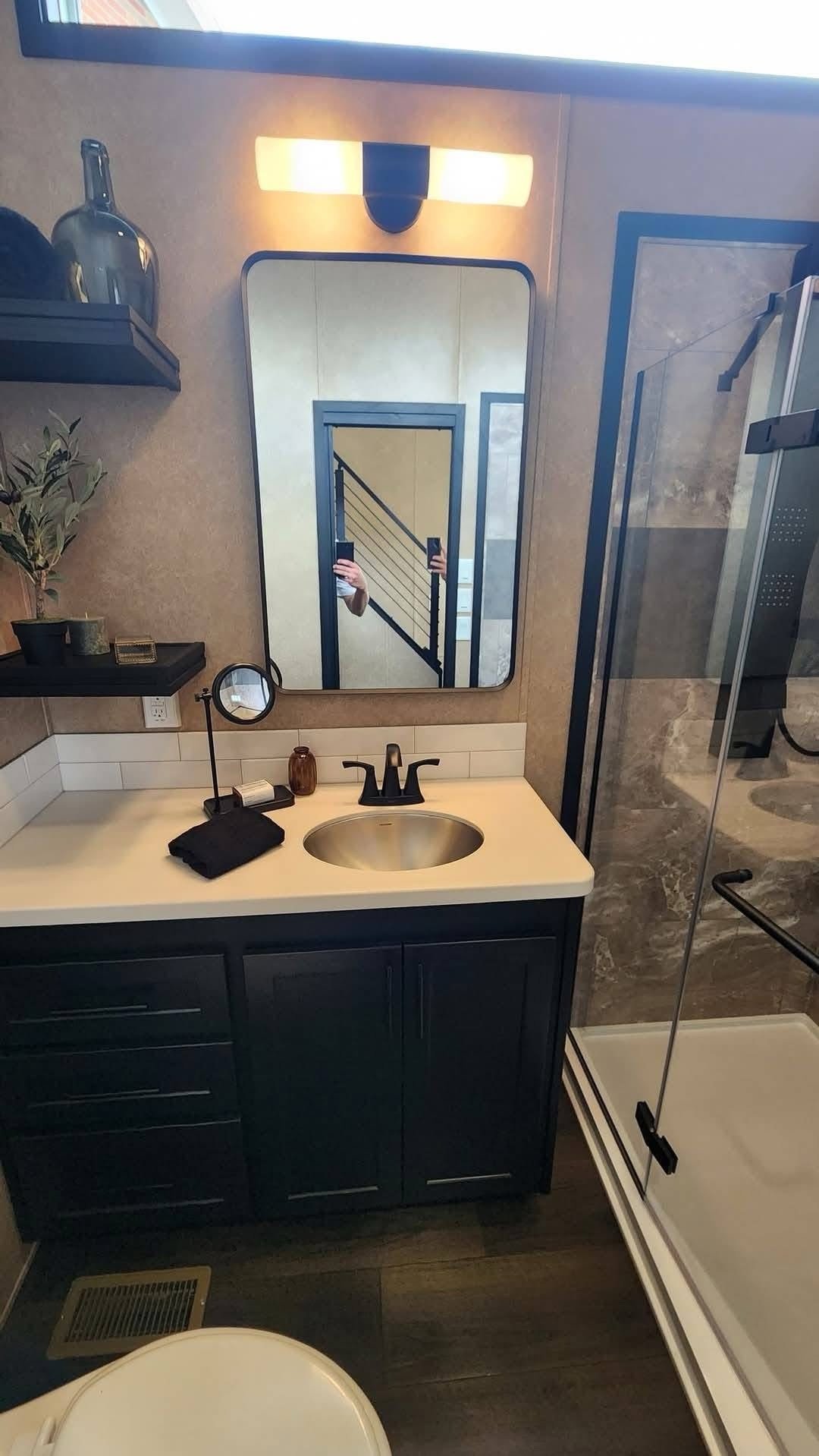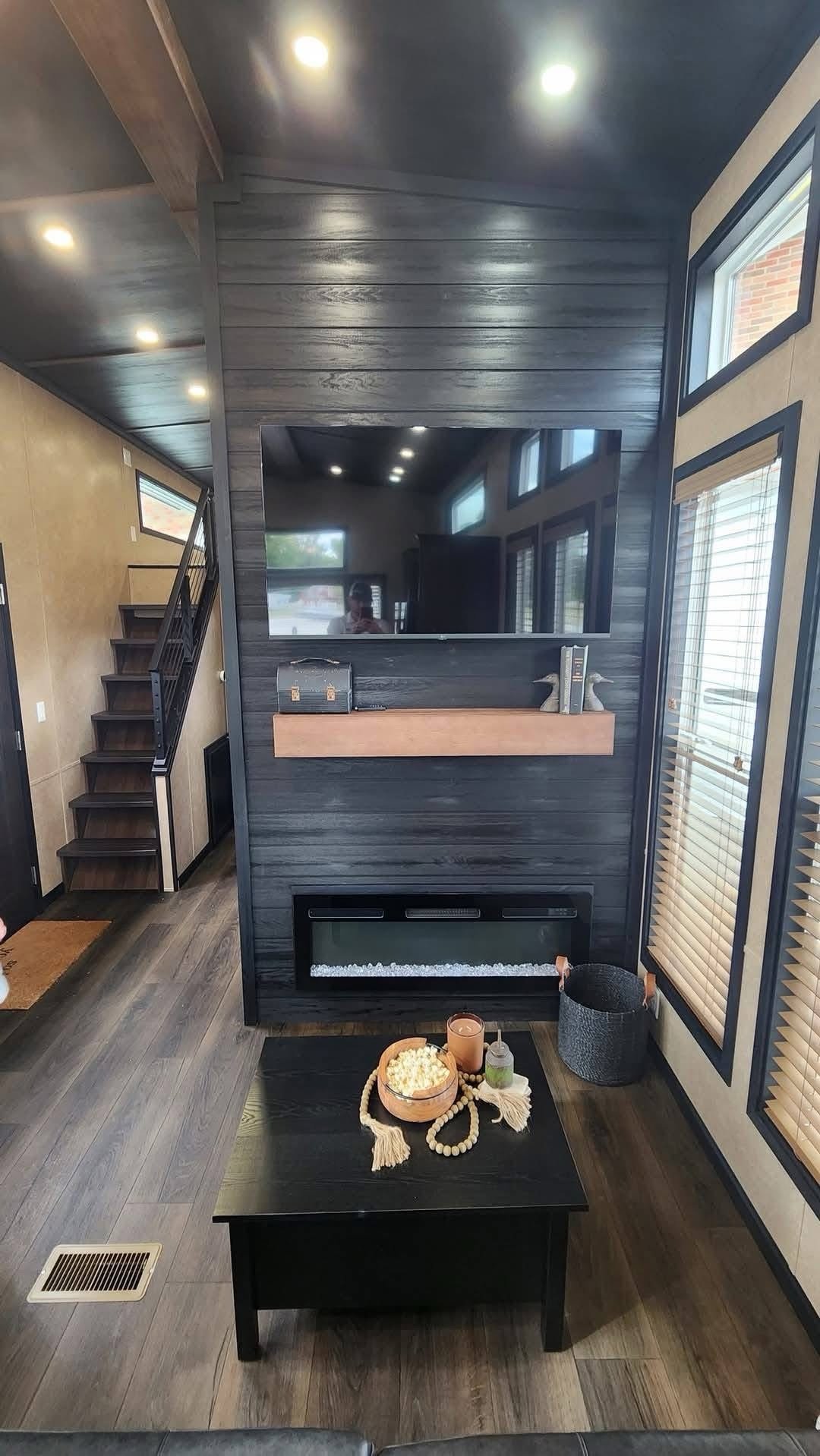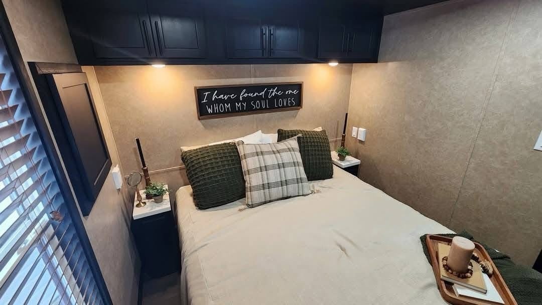 This model comes with all the features someone could ask for. Corian counters, all furniture and appliances, 60″ tile walk in shower, upstairs loft, beautiful shake accent siding and much more.