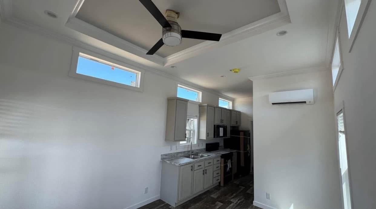 This park model RV features 398 square feet of living space with a wonderful modern style.